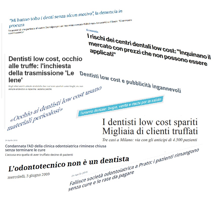 Tuttavia il rischio è di ottenere delle cure odontoiatriche eseguite in maniera approssimativa e non conforme, con la consequenza che poi ci si debba poi rivolgere ad un altro professionista costretto a riparare "il danno subito".